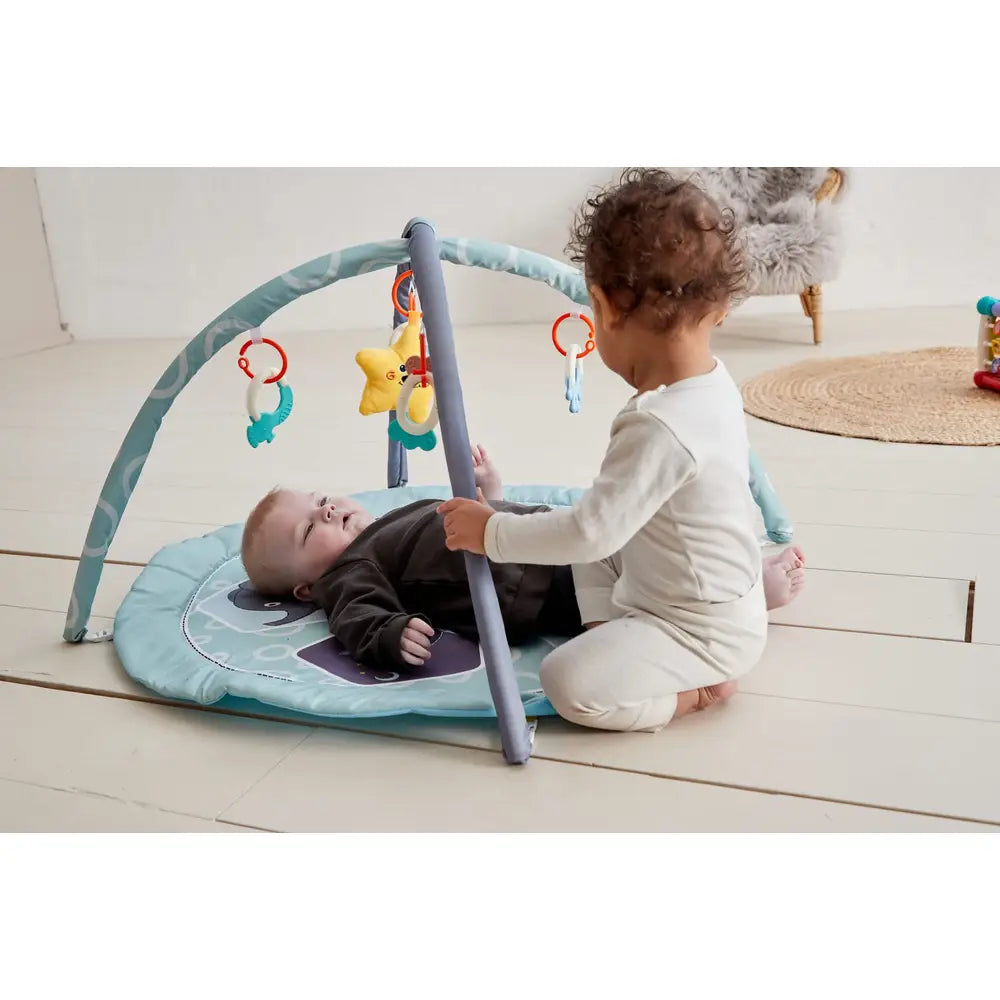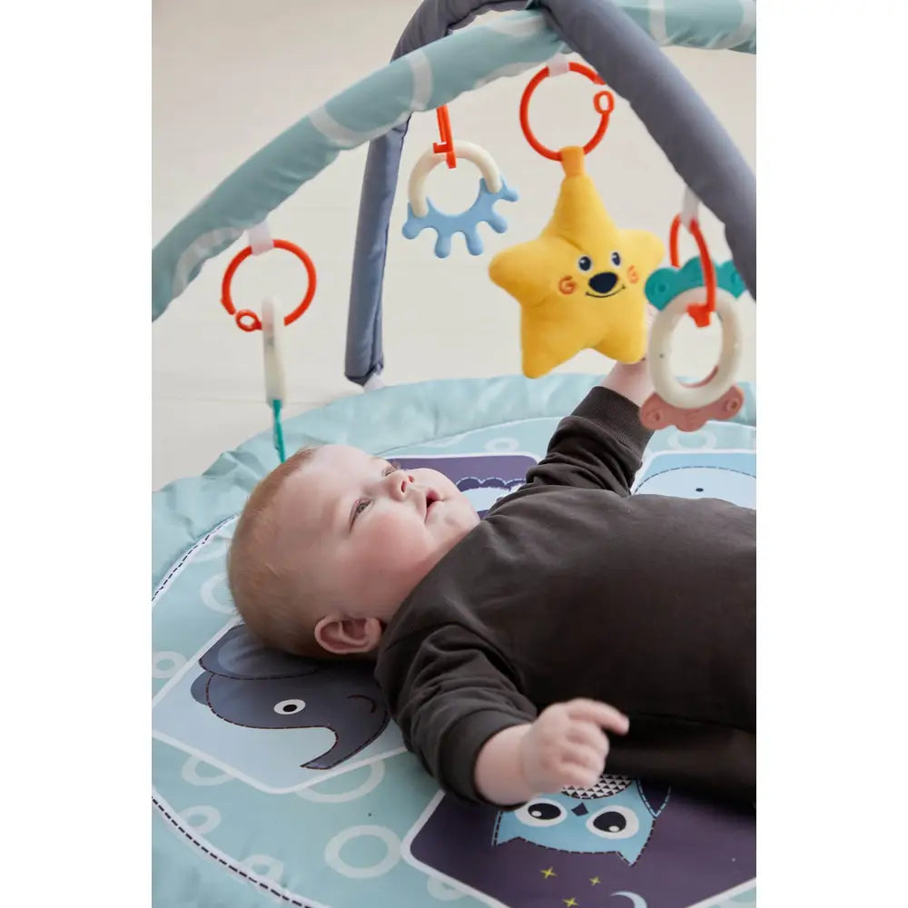 Aktivitetsstativ med dyretema fra Scandinavian Baby Products. Vores aktivitetsstativ og det medfølgende legetæppe er pyntet med mange søde dyr. Der medfølger fem stykker aktivitetslegetøj, som kan sættes op i stængerne. Aktivitetslegetøjet motiverer din baby til at se på det og gribe ud efter det.