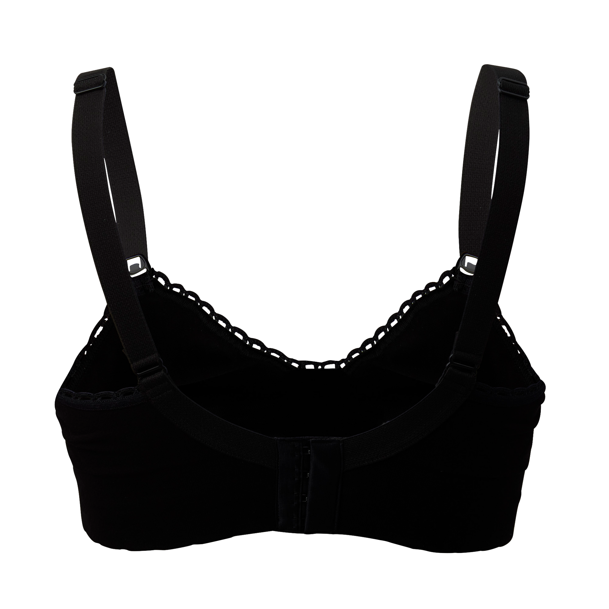 Bh’en kan anvendes allerede under graviditeten, hvor den bløde og fleksible pasform giver ekstra komfort ved voksende og ømme bryster. Når mælken løber til, tilpasser bh’en sig naturligt til en fyldigere barm.