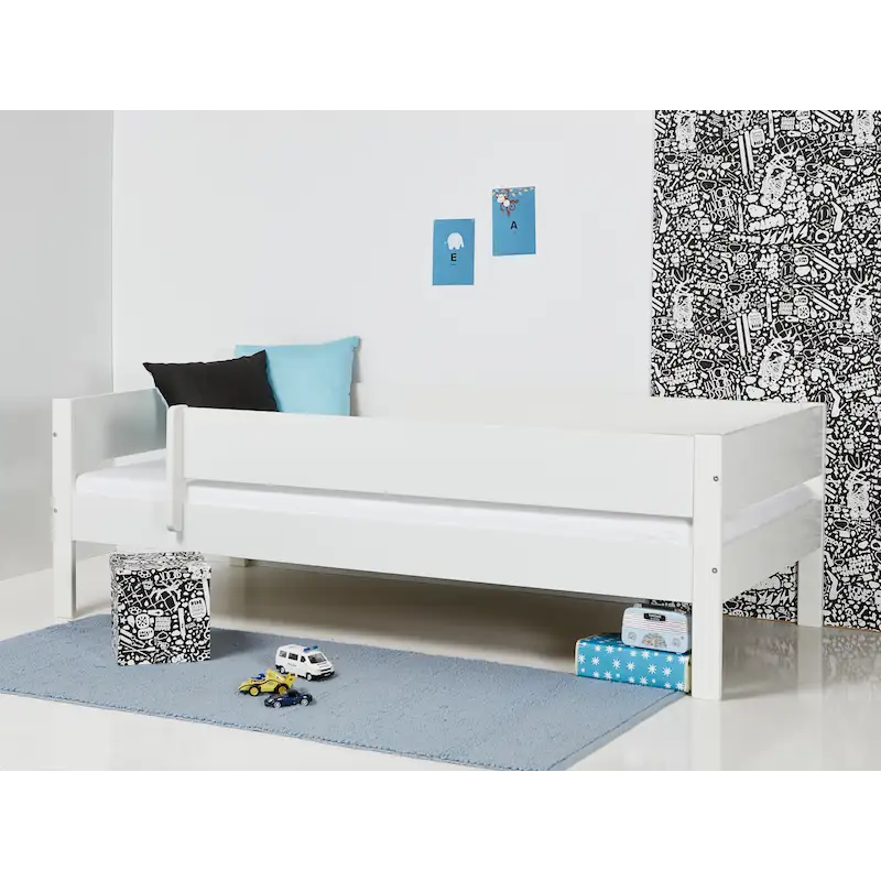 Med Huxie kan du bygge sengen fra denne enkeltseng til en stor familieseng, en køjeseng eller en halvhøjseng - helt efter dit og dit barns behov. Mulighed for farvet sengehest, skuffer, madras og bogkasse.