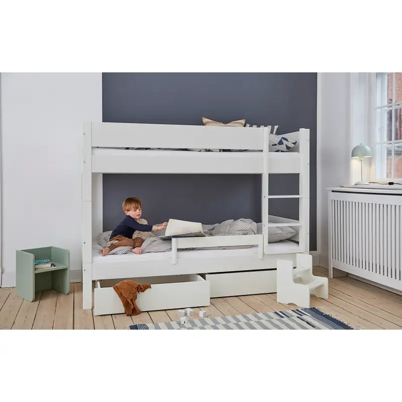 Med denne seng har du en pladsbesparende løsning med plads til 2 børn - eller måske voksne. Her er god plads til leg og samtidig en sikker og hyggelige seng. Du kan starte simpelt ud samtidig med, at du har mulighed for at ændre efter behov. Systemet er enkelt, så det er nemt for alle at ombygge sengen til for eksempel en halvhøjseng eller en briks på gulvet.