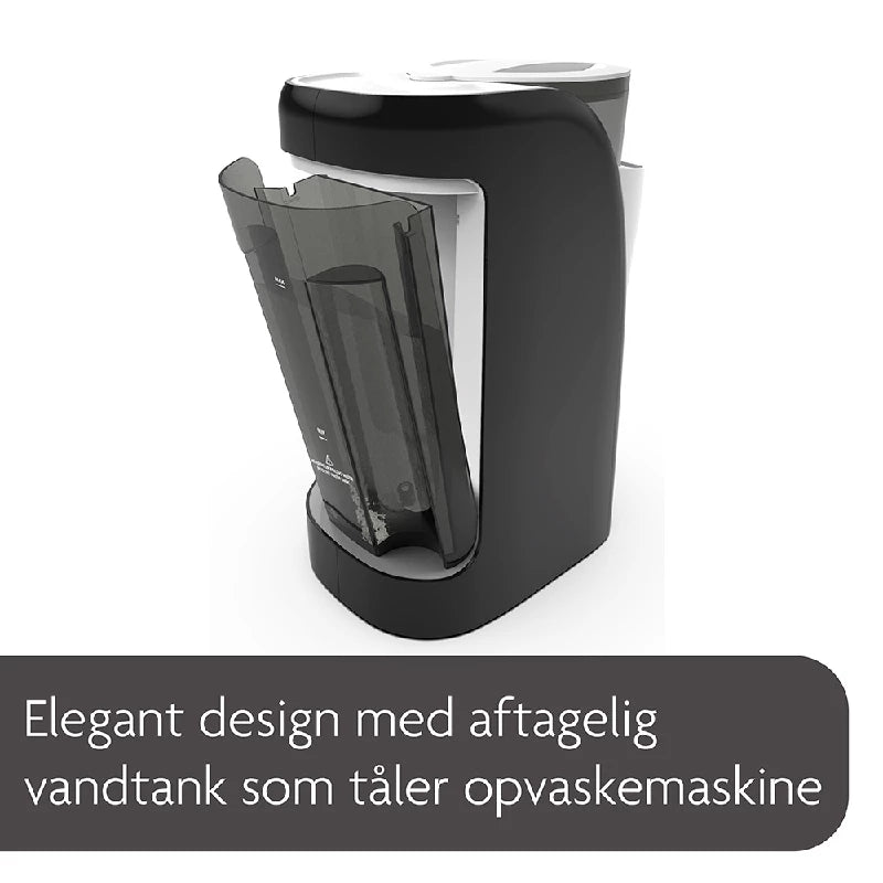 - Fungerer med stort set alle pulvermærker og alle flasketyper/størrelser på markedet.