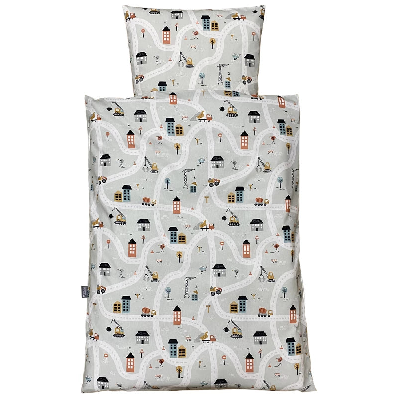 Baby sengelinned, dess. 1241 lys grå m/ veje og stopskilte