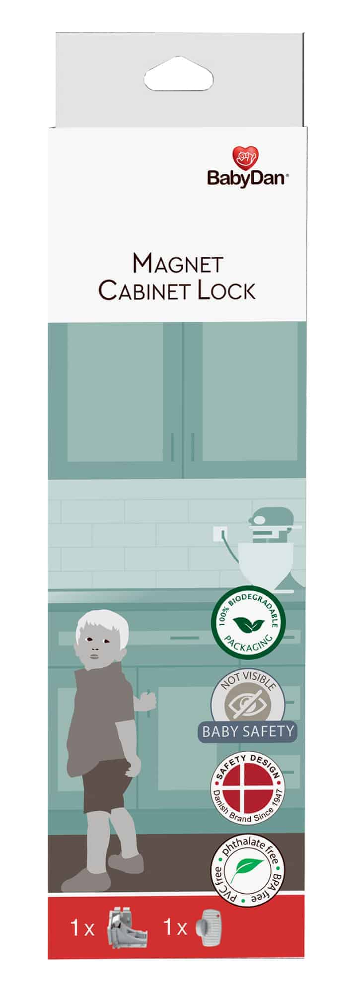 Du kan gøre det nemt at børnesikre skuffer og skabe med magnetlåsen. Du monterer låsen indvendigt i skuffen eller skabet med selvklæbende tape, så den er usynlig udefra. Brug magnetnøglen til at låse op og åbne skuffen eller skabet. Der følger en holder med til nøglen, som du kan montere et praktisk sted, som er uden for barnets rækkevidde. Magnetlåsen er i en 100% bionedbrydelig emballagen, som er Cradle to Cradle certificeret. Det betyder, at emballagen vil blive nedbrudt naturligt, når du smider den ud, så den efterlader intet der skader vores planet. På den måde kan du beskytte din lille guldklump fra ulykker og tage ansvar for den verden, som barnet vokser op i.