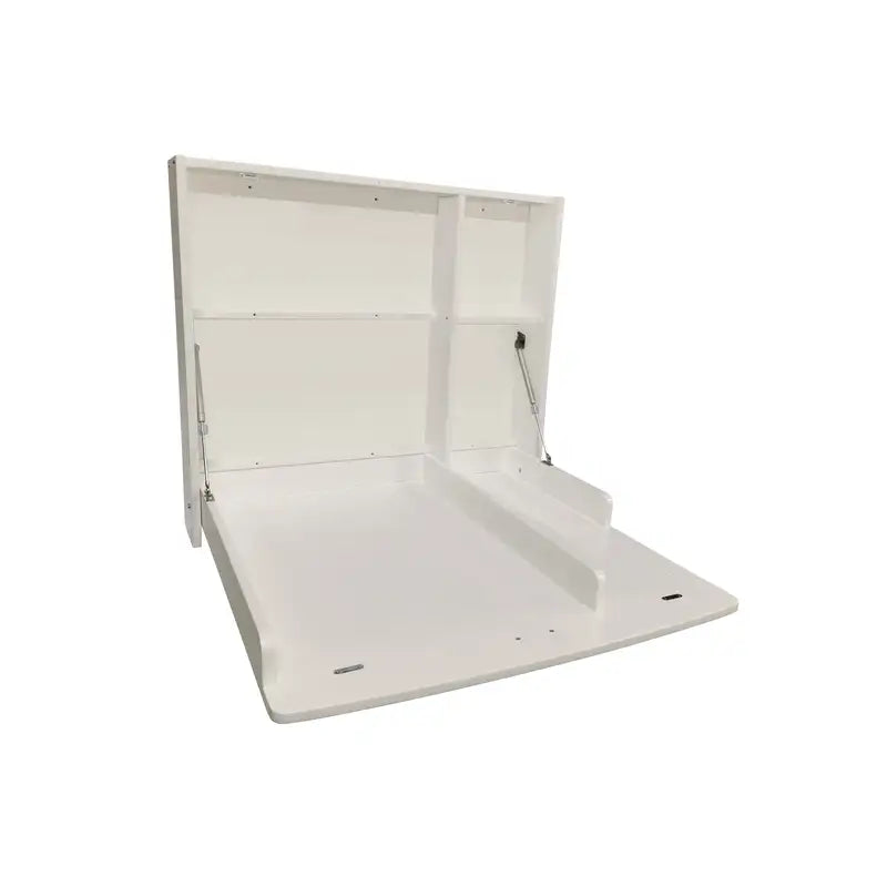 Leder du efter et pladsbesparende puslebord uden at gå på kompromis med funktionalitet? Vores ekstra brede vægmonterede puslebord er den ideelle løsning til dig, der ønsker maksimal opbevaringsplads i små rum. Det smarte design gør, at puslebordet ikke fylder unødigt i rummet, da det nemt klappes op mod væggen, når det ikke er i brug – perfekt til mindre badeværelser eller børneværelser med begrænset plads.