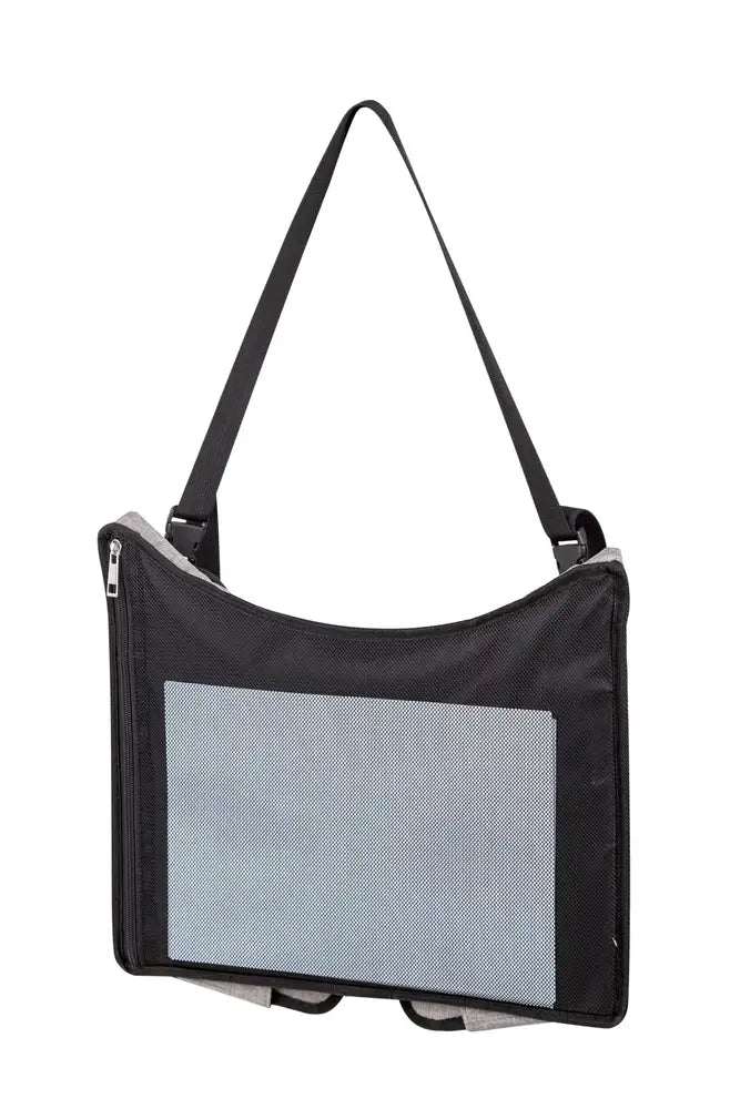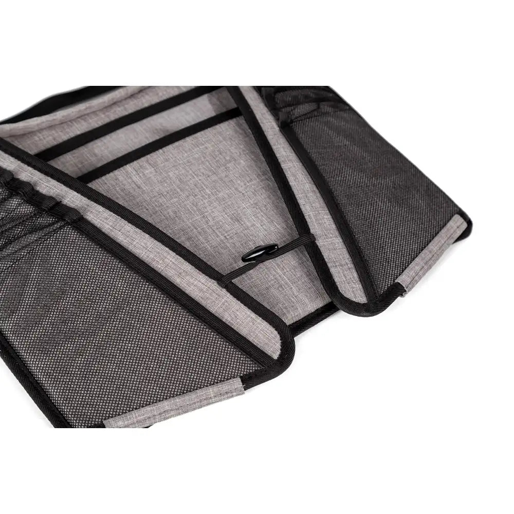 Når turen er færdig, kan bakken nemt foldes sammen omkring sig selv og lukkes med en elastikstrop, og bæres som en skuldertaske af enten dig eller barnet selv.