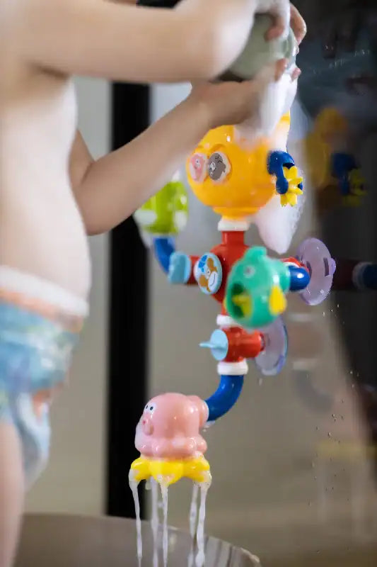 Skab sjove stunder i badet med badelegetøj med havtema. Dette søde sæt inkluderer elskede havdyr som en blæksprutte, en fisk og en krabbe, der bringer leg og glæde til badestunden. Legetøjet kan let fastgøres til fliser ved hjælp af sugekopper, og børnene kan udforske vandets bevægelser gennem små møller og huller.