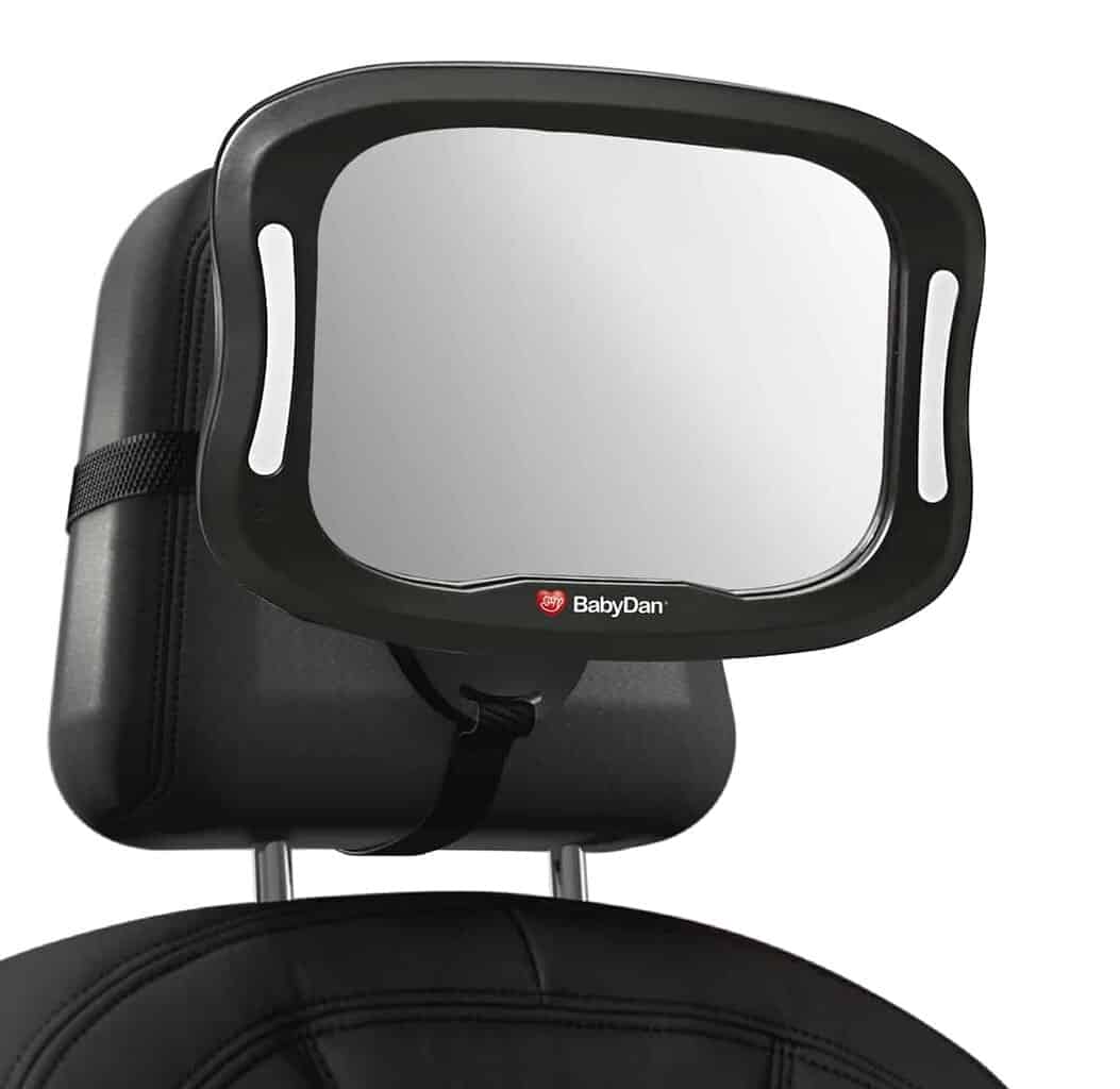 Dette store spejl giver mulighed for at se baby i en bagudvendt bilstol