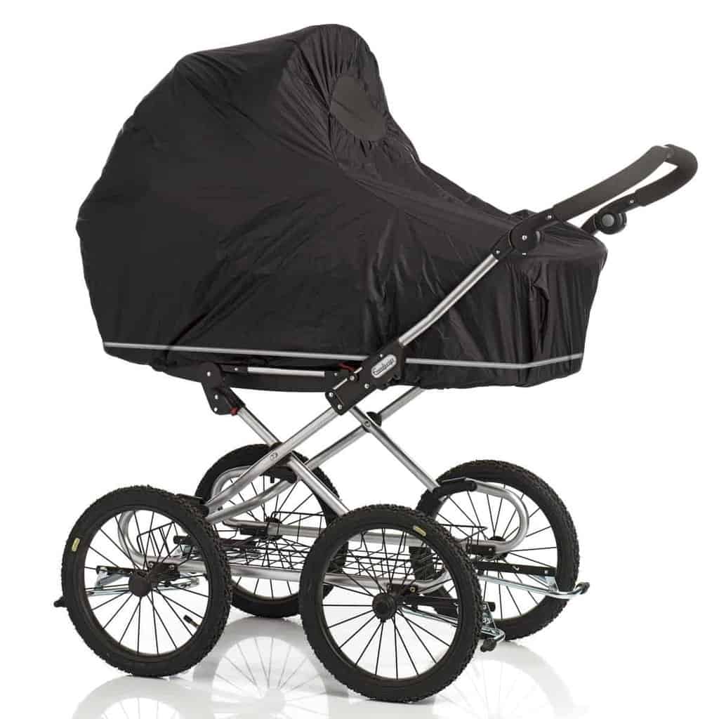 På en regnvejrsdag er regnslaget guld værd. Det har et indbygget insektnet, så du kan beskytte din lille guldklump mod regndråber og insekter. Regnslaget har klimakontrol, der tillader fugten inde fra barnevognen at komme ud, men forhindrer, at regnen udefra kommer ind. På den måde har dit barn det bedste og mest behagelige indeklima i barnevognen. Med lynlåsen, som går hele vejen rundt, kan du let tage regnslaget af og på. Når du ikke bruger regnslaget kan du opbevare det i transportposen, som du kan montere på styret af barnevognen.