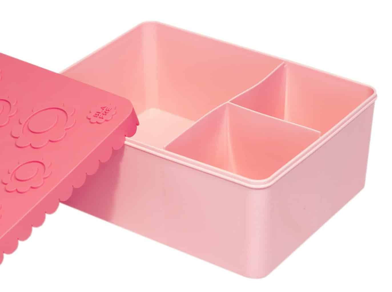 Denne madkasse er designet, udviklet og produceret i Norge - med en hel blomster eng på låget, klar til at indholde en lækker madpakke. Kvaliteten er i topklasse og helt uden BPA. Boksen stortrives i opvaskemaskinen. Madkassen har tre rum og kan tåle temperaturer fra -40 helt op til +120 grader.