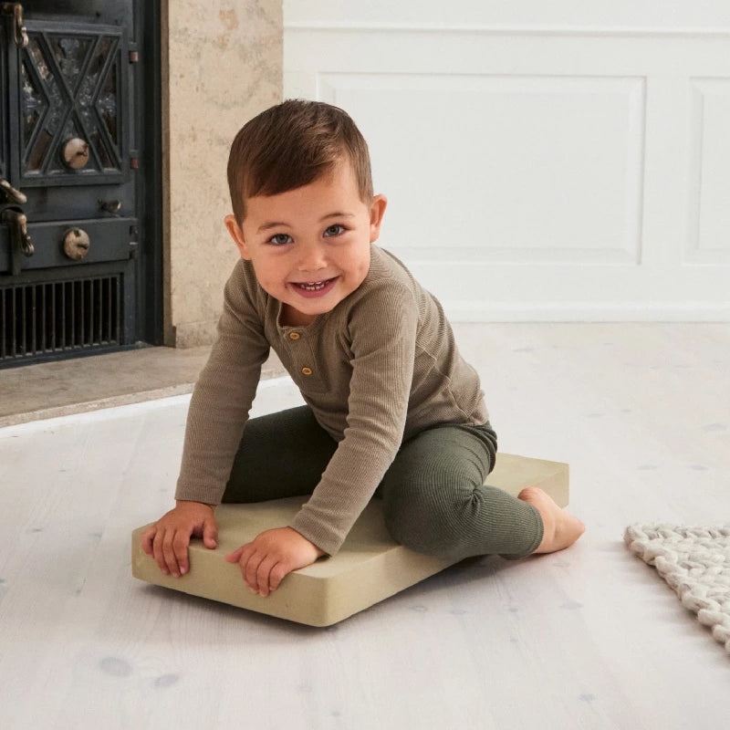 Stimuler både vestibulærsans og muskelledsans når den lille ligger på maven på Tumlebræt og spænder op i hele kroppen af begejstring og eventyrsglæde.