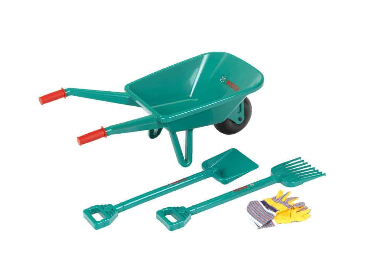 Bosch Havesæt 71x33 cm +3år m/trillebør, rive, skovl & arbejdshandsker. Pakket i net