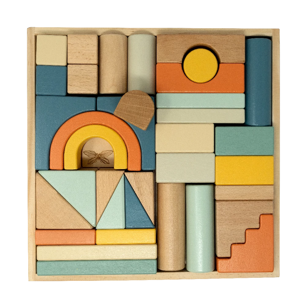 Men bakken giver også en ekstra dimension til de lidt større børn. Her kan de bruge klodserne som et tangram-puslespil og udfordre sig selv i at få alle klodserne til at passe perfekt ned i bakken. Dette ikke kun styrker form- og farvegenkendelse, men også kognitive færdigheder og logisk tænkning.