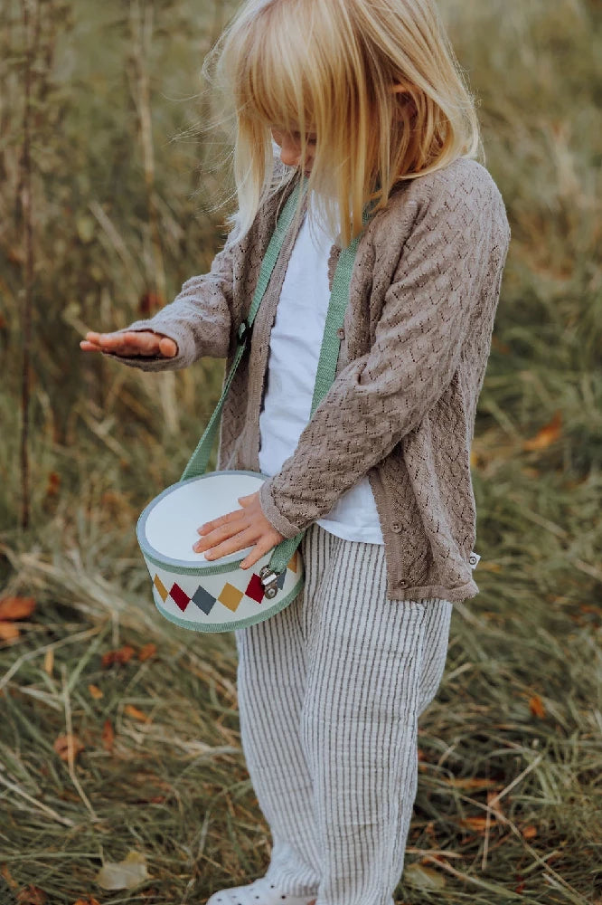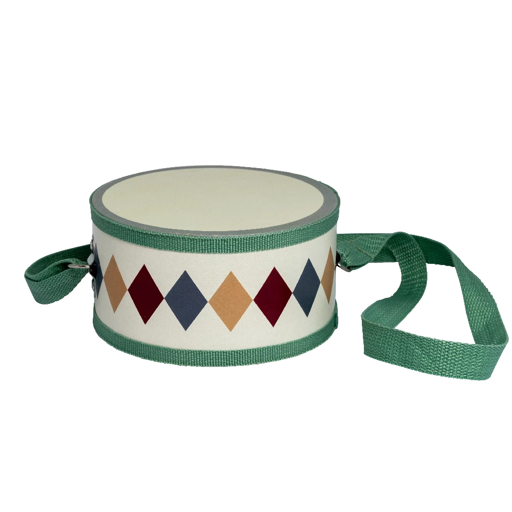 Den flotte nordiske farve og det charmerende harlekin mønster gør trommen til en fryd for både øjet og øret. Som en del af den store nye musikserie fra MAMAMEMO®, er trommen designet til at inspirere og underholde børn i alle aldre.