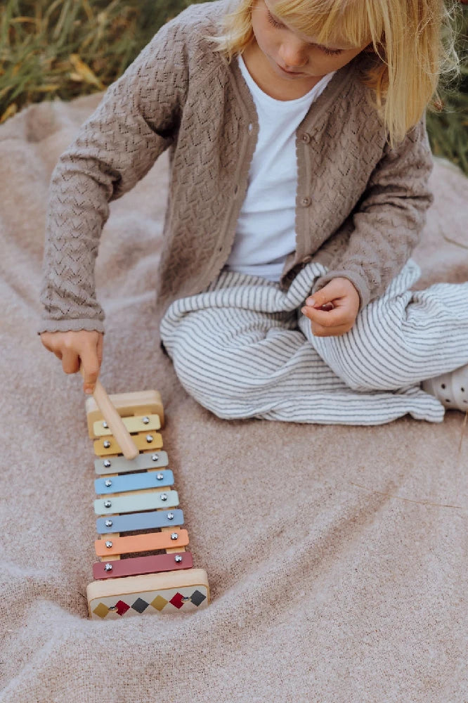 Xylofonen inviterer til at udforske musik på gehør og med den medfølgende kølle kan dit barn begynde at udforske tonerne og skabe sine egne melodier.