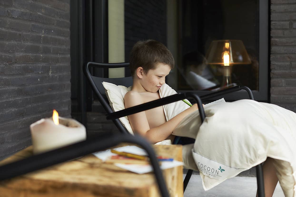 Cocoon Merino Uld Juniorpude. Cocoons merino uld pude er et eksklusivt soveprodukt lavet af den fineste økologiske Merino uld fra sydamerikanske Merino får. Serien indebærer dyner og puder til baby, junior og voksen. Lavet af en silkeblød og 100% GOTS certificeret bomuldsmetervare omkring en blød kartning af vores ubehandlede økologiske Merino uld fibre. Serien af Merino Wool soveprodukter er udviklet og designet i Danmark, og produceres i EU af de bedste certificerede europæiske metervarer og den fineste økologiske Merino uld.