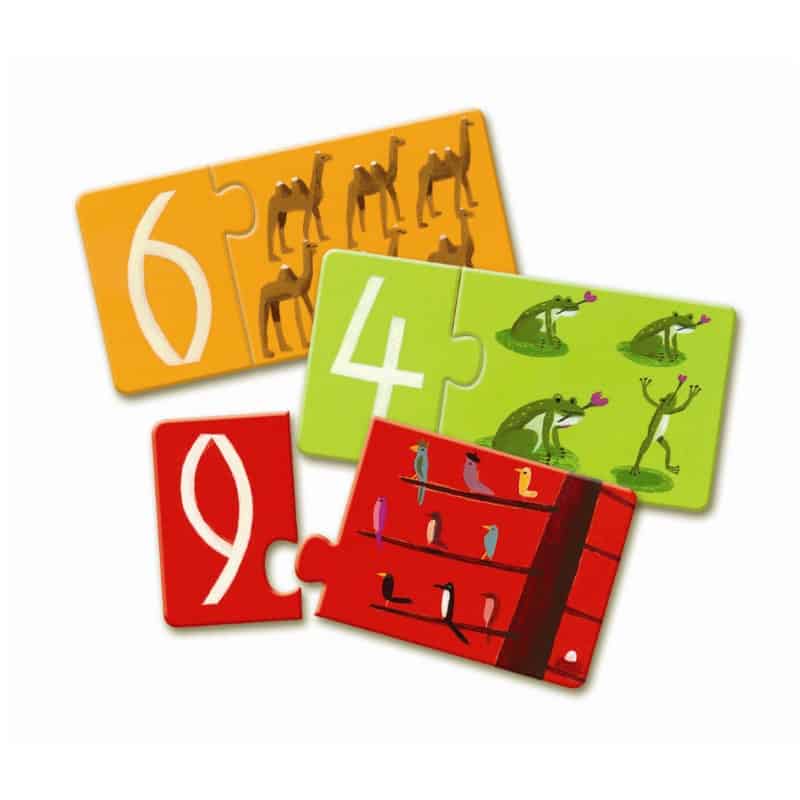 Djeco Lærespil Numre. Sjovt og lærerigt spil, hvor man skal finde den rigtige brik, der passer sammen med det rigtige tal.