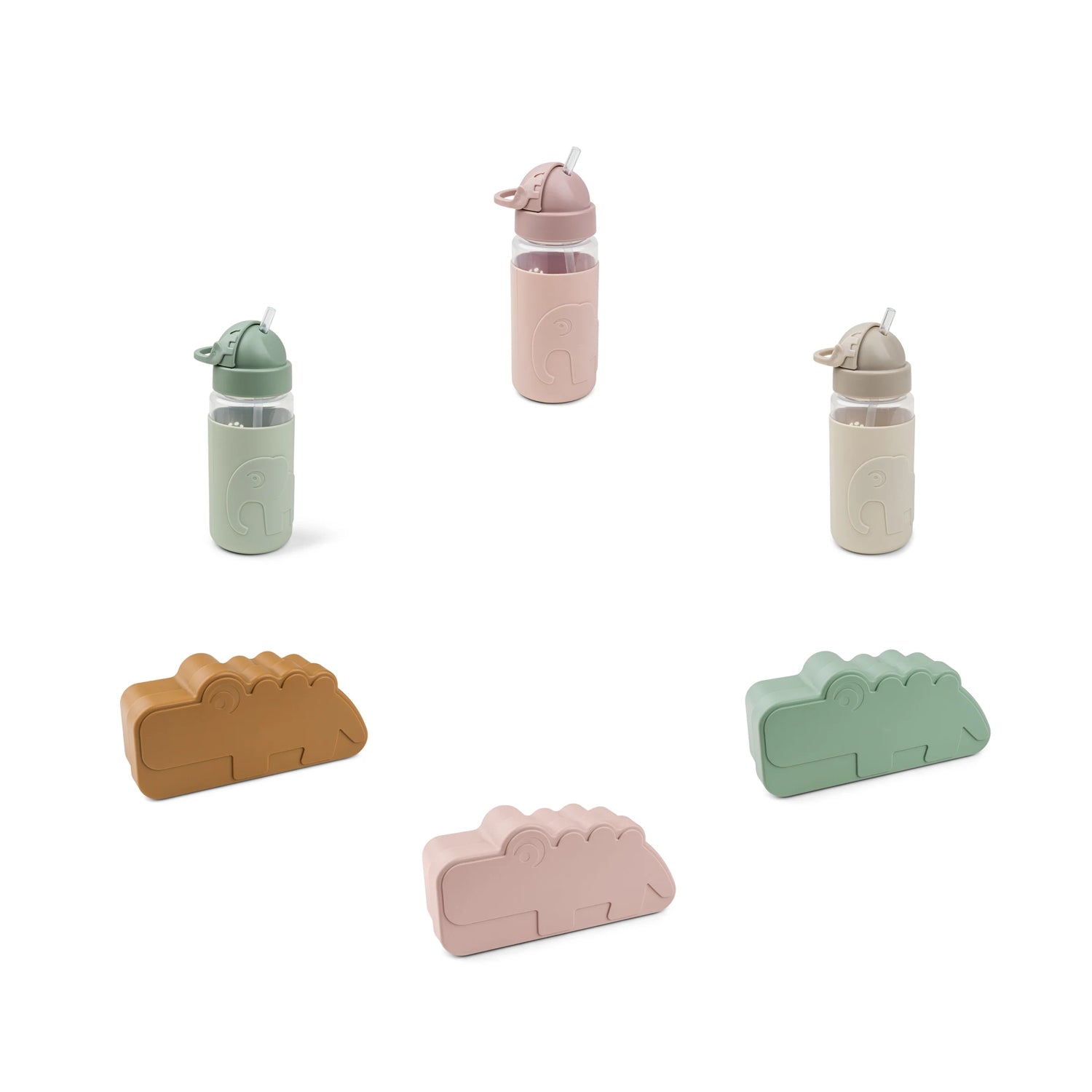 Silikoneovertrækket er præget med Elphee og har søde huller formet som Elphees fodaftryk. De sandfarvede toner omfavner flasken.