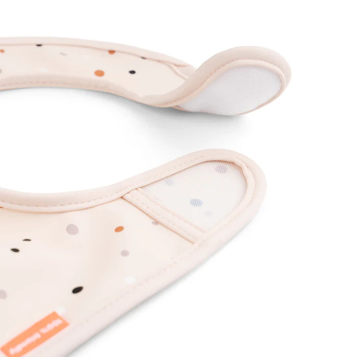 Din Deer friend er klar til at gøre spisetid lidt mindre rodet med dette praktiske sæt af to vandtætte hagesmække med Velcro-lukning. De er nemme at tørre af og den smarte lomme fanger den mad der ryger ved siden af og sparer dig en masse rengøringstid. De bløde hagesmække har en smart Velcro-lukning, der gør dem nemme at tage af og på. Det søde sæt består af to hagesmække, den ene i en lys, pudderfarvet nuance er dekoreret med Ozzo og fine vandplanter og Happy dots i forskellige, lyse farver på den anden.