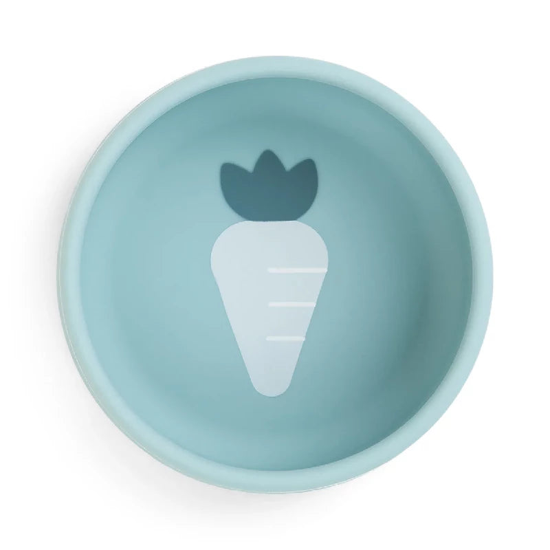 Silikone "første måltid"-sættet gør spisetid sjov og nem. Det praktiske startsæt i skridsikker silikone med godt greb indeholder en børneskål, en ske og et minimag. Perfekt som det første spisestel til babyer.