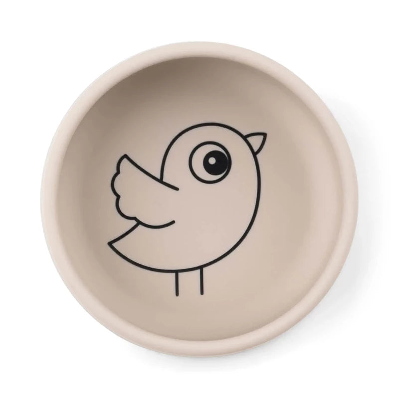 Silikone "første måltid"-sættet gør spisetid sjov og nem. Det praktiske startsæt i skridsikker silikone med godt greb indeholder en børneskål, en ske og et minimag. Perfekt som det første spisestel til babyer.