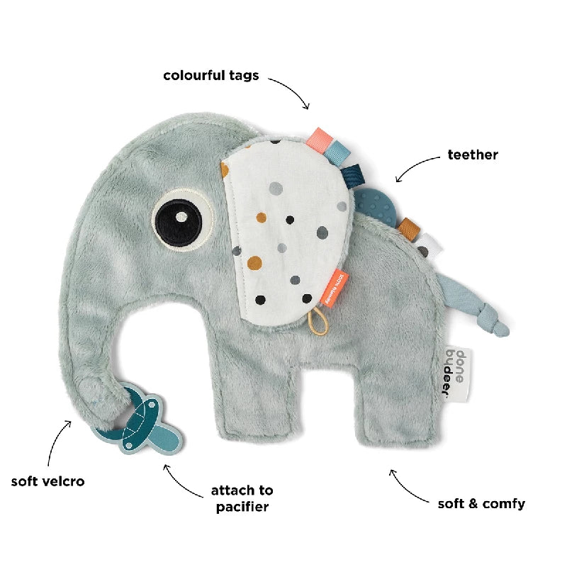 Sensoriske elementer som forskellige teksturer og farvede tags vil stimulere dit barns sanser