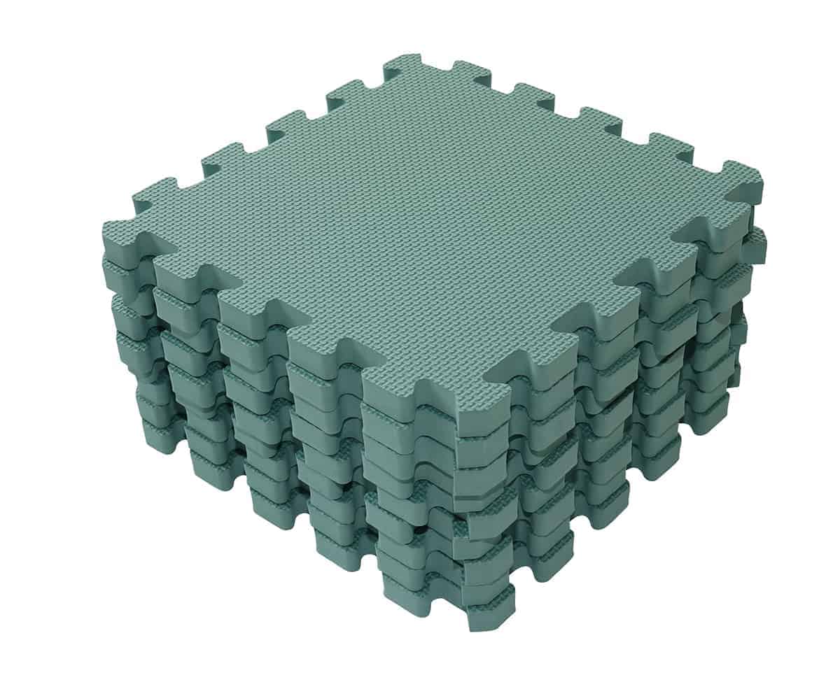 Legegulv i tykt skum som både er stød-, lyd og varme/kulde isolerende. Legegulvet måler samlet 90x90 og består af 9 brikker på 30x30 x 1,4 cm. Fås i 5 varianter: Grå, Rosa, Blå, Grøn, Grå/lysegrå med tal. Opfylder alle gældende krav og indeholder ikke PVC, phthalater, formaldehyd og formamid. Testet helt fra 0+ mdr.