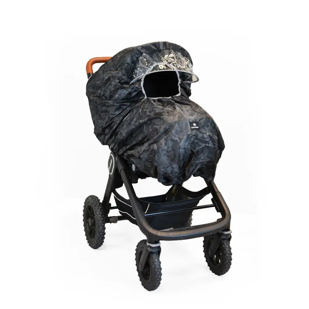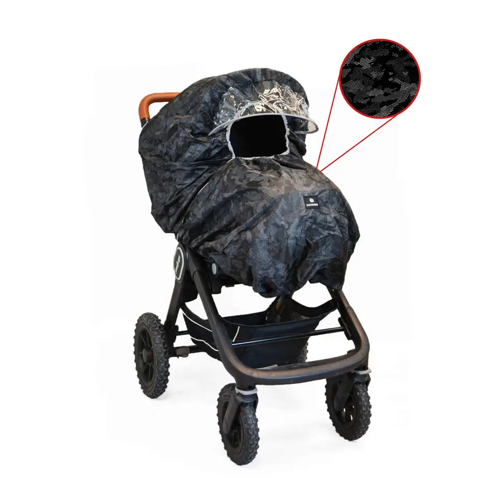 Unvisersalt regnslag, der passer på de fleste vogne med refleksmønster og gennemsigtig skærm.