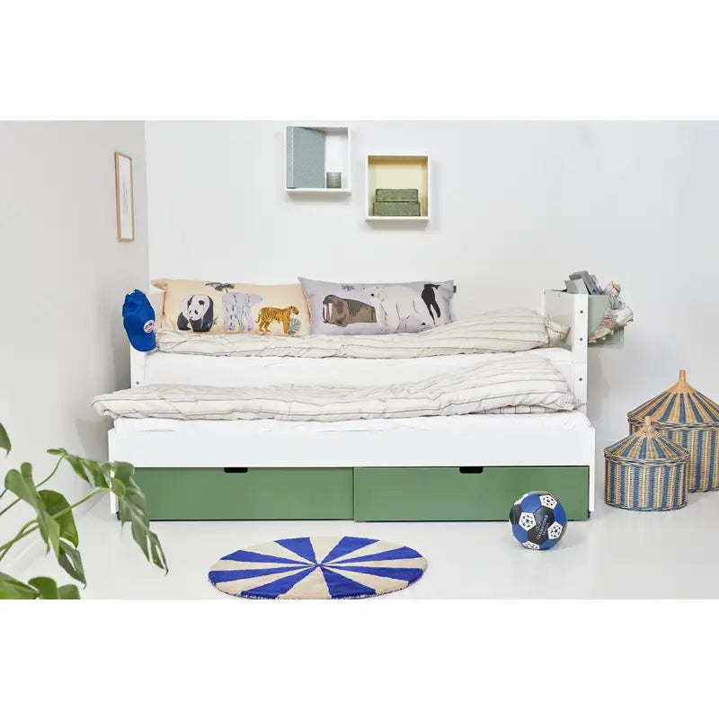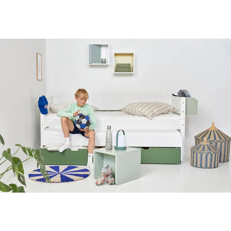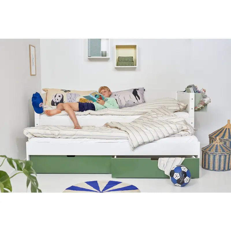 Enkeltseng Luna med skuffer i Dark Green og udtræksseng