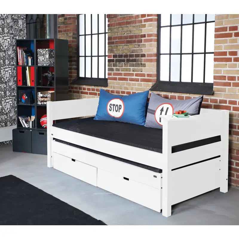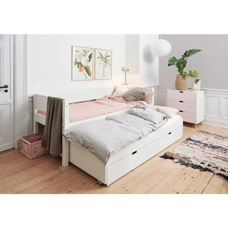 Luna er en børneseng med lamelbund, sengeramme, skuffer og udtræksseng.
