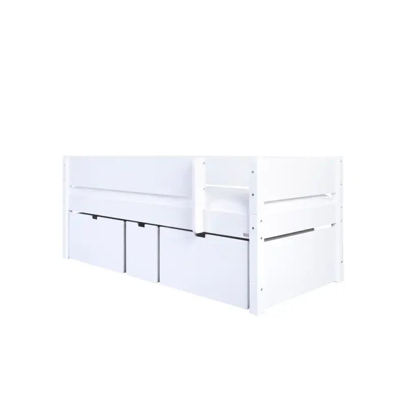 Nanna sengekombinationen er lavet til dig, der har brug for masser af opbevaringsrum. Skufferne er store og er gode til at skjule rodet på børneværelset. Sengehest kan tilkøbes