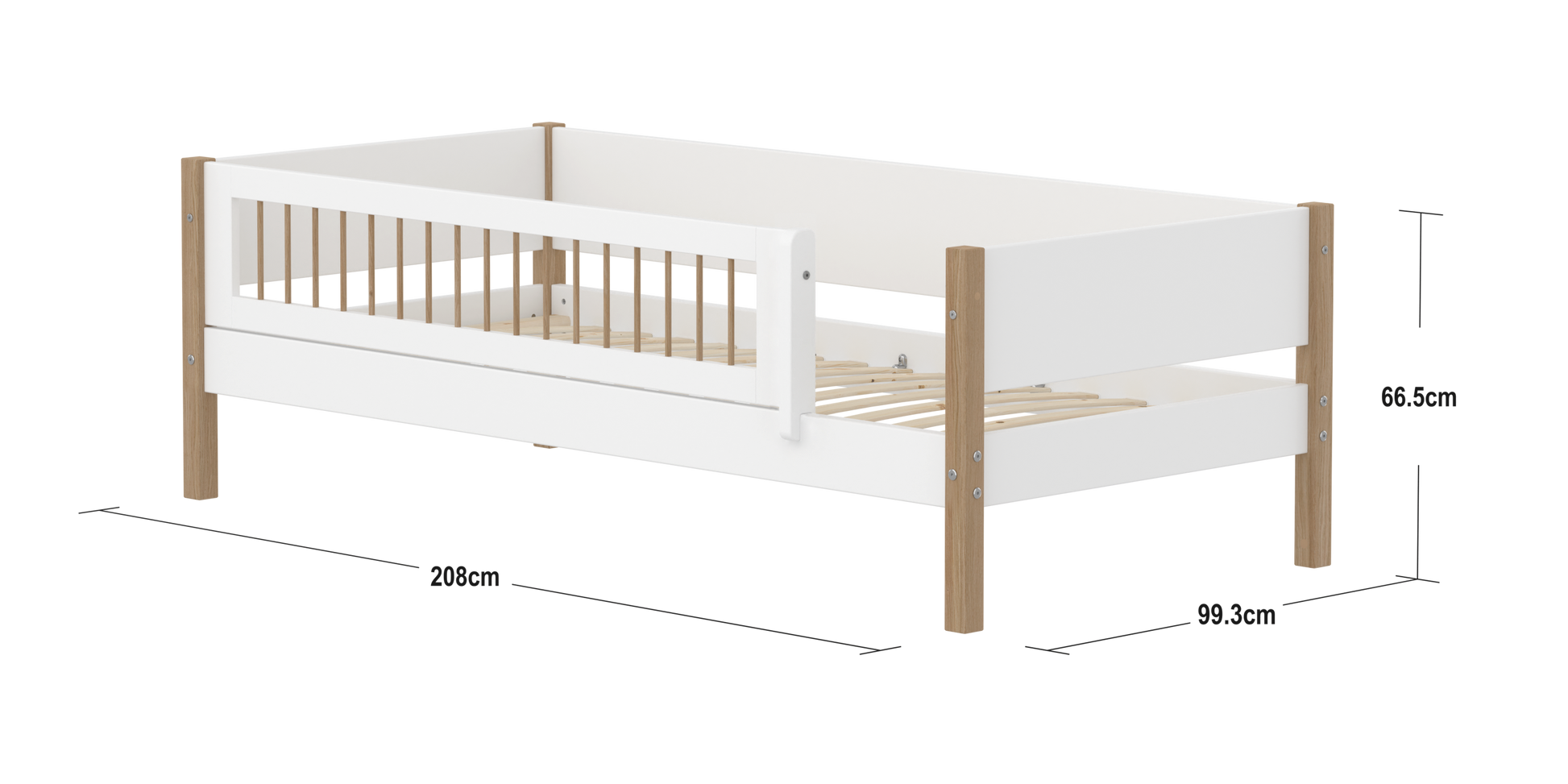 FLEXA NOR Enkeltseng 90x200 cm m. crossbar sengehest - Hvid/eg