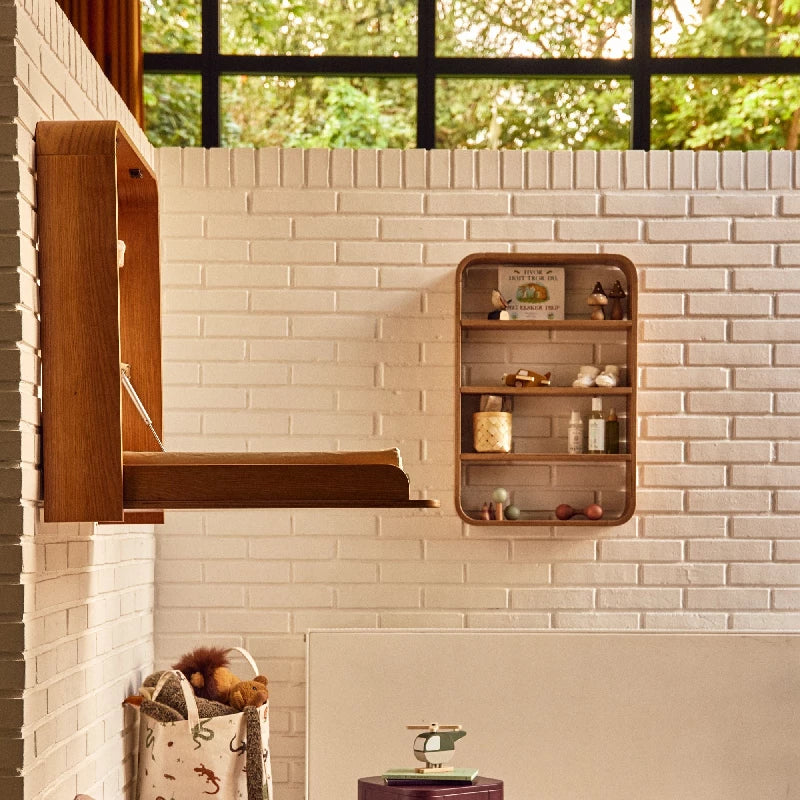 Indret dit barns værelse med den alsidige væghængte hylde. Denne hylde er perfekt til udstilling af bøger, små stykker legetøj eller pyntegenstande og tilføjer både funktion og stil til ethvert rum. Dens slanke, minimalistiske design supplerer en række forskellige indretninger.
