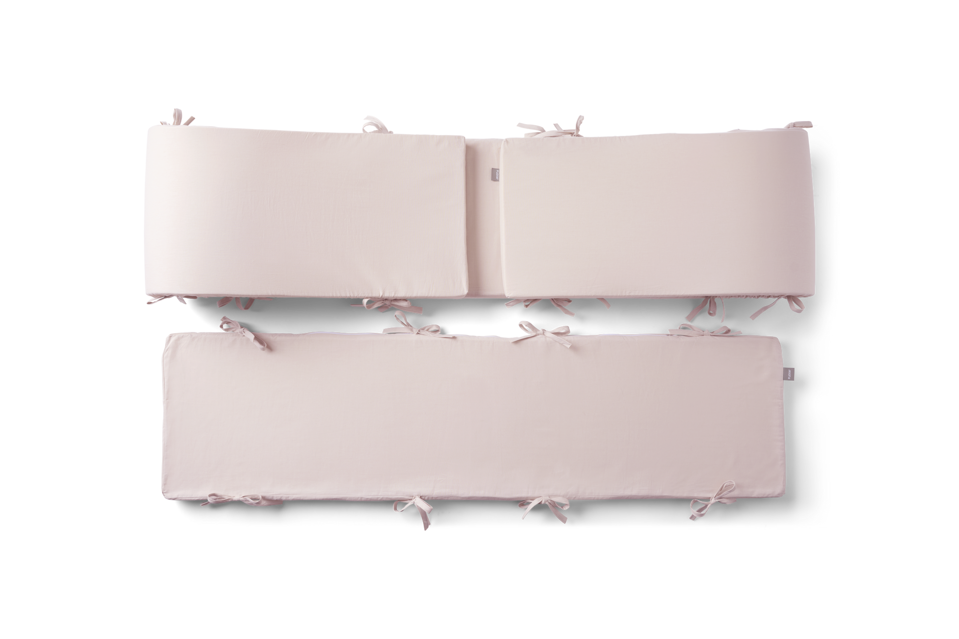 DAWN Sengerend. Gør dit barns tremmeseng ekstra behagelig med denne bløde sengerand. Den 2,5 cm. tykke skum giver dejlig, blød polstring til indersiden af dit barns tremmeseng og sikrer samtidig, at hverken sutter, bamser eller nusseklude kan falde ud. Sengeranden er udstyret med praktiske bindebånd og passer i målene til de fleste tremmesenge. Betrækket er fremstillet af 100% bomuld og certificeret OEKO-TEX® Standard 100 – din garanti for, at produktet er helt fri for skadelige stoffer. En skjult lynlås gør det nemt at tage betrækket af og maskinvaske det ved 40 grader.