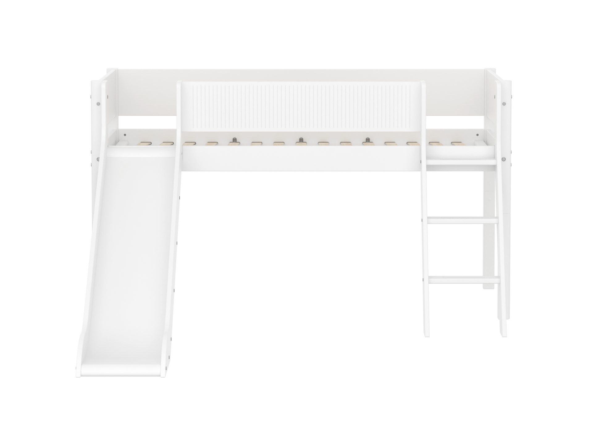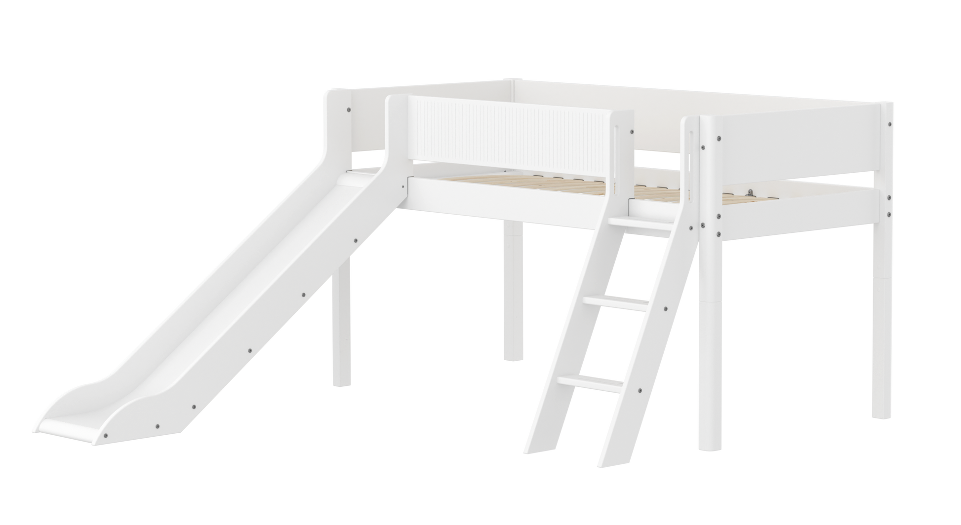 FLEXA WHITE halvhøj seng med lige stige og rutsjebane. Sengen, der forvandler børneværelset til en legeplads!