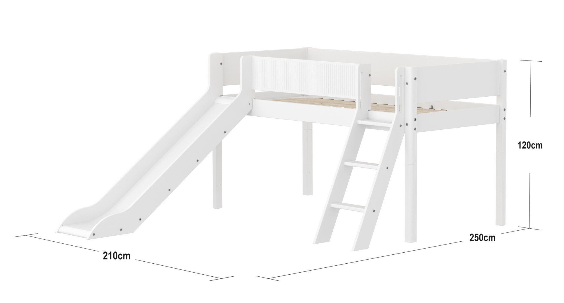 WHITE serien vokser med dit barn. Hvis du fjerner rutsjebanen og stigen og sætter korte ben på den halvhøje seng, kan du lave den om til en enkeltseng. Og med høje ben kan du lave den om til en højseng.