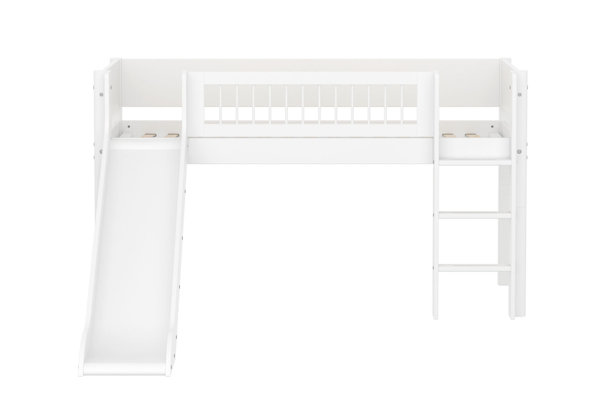 FLEXA WHITE halvhøj seng med lige stige og rutsjebane. Sengen, der forvandler børneværelset til en legeplads!