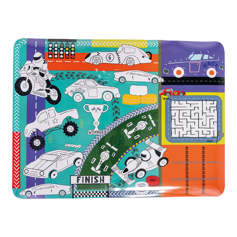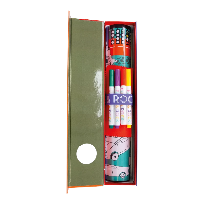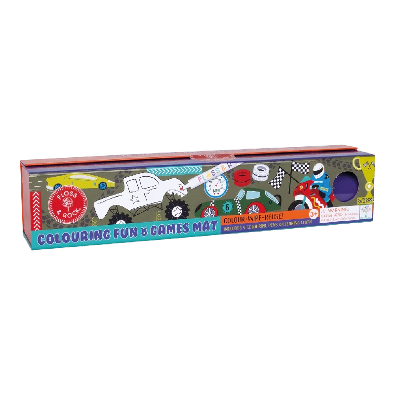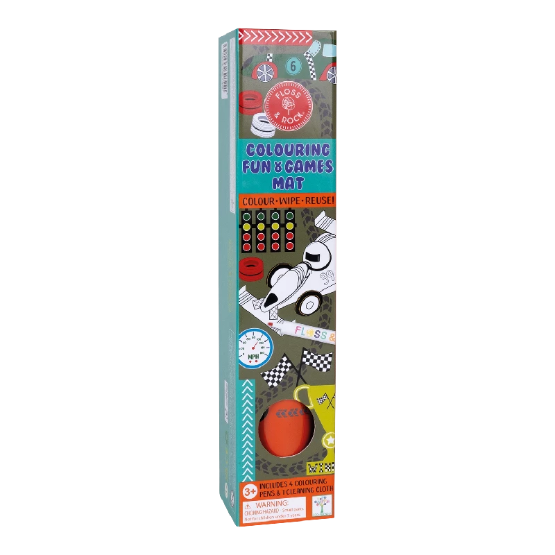 Floss & Rock´s helt nye Male og tegne måtte er en genial multi-play-aktivitet til rejsen. Rul blot måtten ud til farvelægning, prik-til-prik, og labyrint. Når du er færdig, tørrer du måtten af, ruller den sammen og bruger båndet til at pakke den ned i den praktiske æske, så den kan bruges igen og igen! Måtten indeholder 4 farvede penne, en praktisk rengøringsklud, et spændebånd og en genanvendelig opbevaringsboks. Genial til at have med på farten.