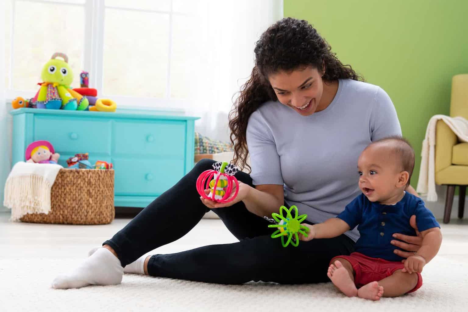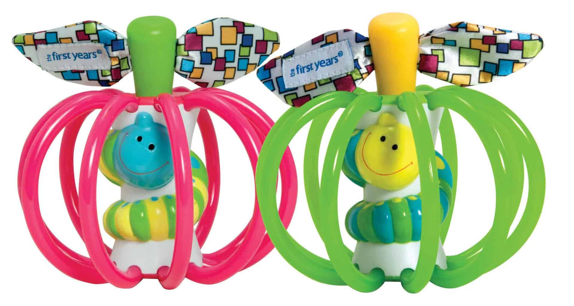 Sjovt æble der er nemt at gribe fast i for små hænder, og god at bide i. Rasler når det rystes.