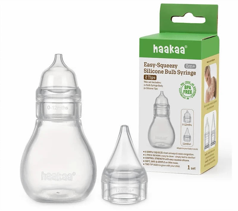 Haakaas Easy-Squeezy Silikone Næsesuger er den nemmeste måde at rense din lilles tilstoppede, næse på! Vore næsesuger, fjerner ubehagelige og seje snotklumper op med blot et let tryk, hvilket renser din babys luftveje og hjælper dem med at trække vejret lettere.