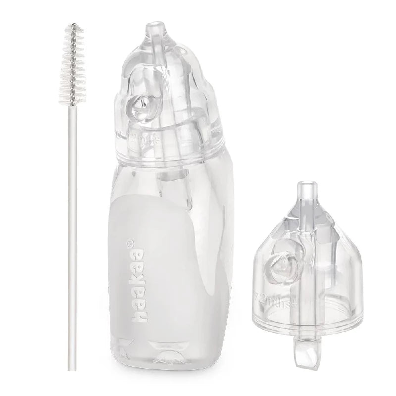 Denne næsesuger er designet med to ventiler, der sikrer at der ikke nogen tilbagestrømning ind i dit barns næse. Der medfølger to spidsstørrelser, så du kan vælge den der passer til dit barns næse. Næsesugeren er nem at bruge og efterfølgende skille af så den kan rengøres grundigt. Der medfølger en lille rensebørste, der sørger for at du kan rengøre enhver lille afkrog efter brug. Næsesugeren er gennemsigtig og med målemarkører på siden, så du kan se, hvor meget slim der er opsamlet.