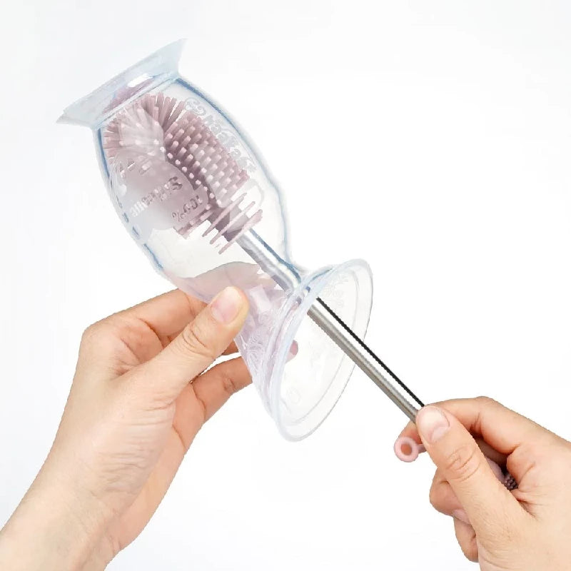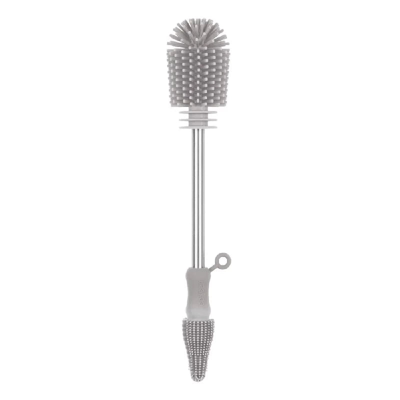 Denne opvaskebørste har bløde og fleksible silikonebørster, der giver en 360° rengøring for alle dine genstande. I den ene ende er der et børstehoved, som er perfekt størrelse til at skrubbe dine pumper, flasker og silikoneposer. I den anden ende er der en børste med en vinklet spids for at nå hjørnerne af dine flaskesutter, mælkeopsamlere og meget mere! Dette kit indeholder også to forskellige mindre børster, med bløde silikonekanter, der hjælper dig med at rense indersiden af smalle åbninger såsom genanvendelige sugerør, råmælks opsamlere og sutter.