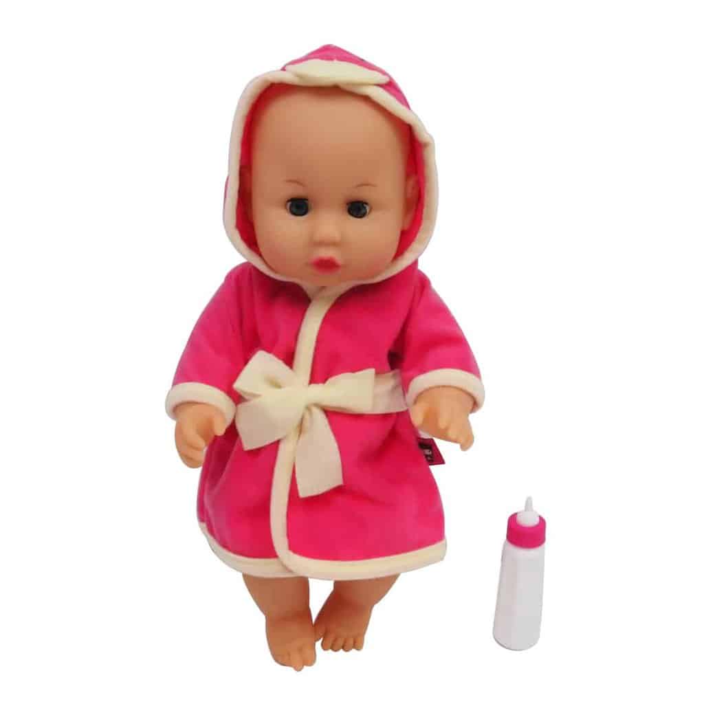 Den søde dukke, Emma, er klar til sit bad! Hun har sin fine badekåbe på, og sutteflaske til når hun bliver sulten. Længde 30cm. Fra 3 år.