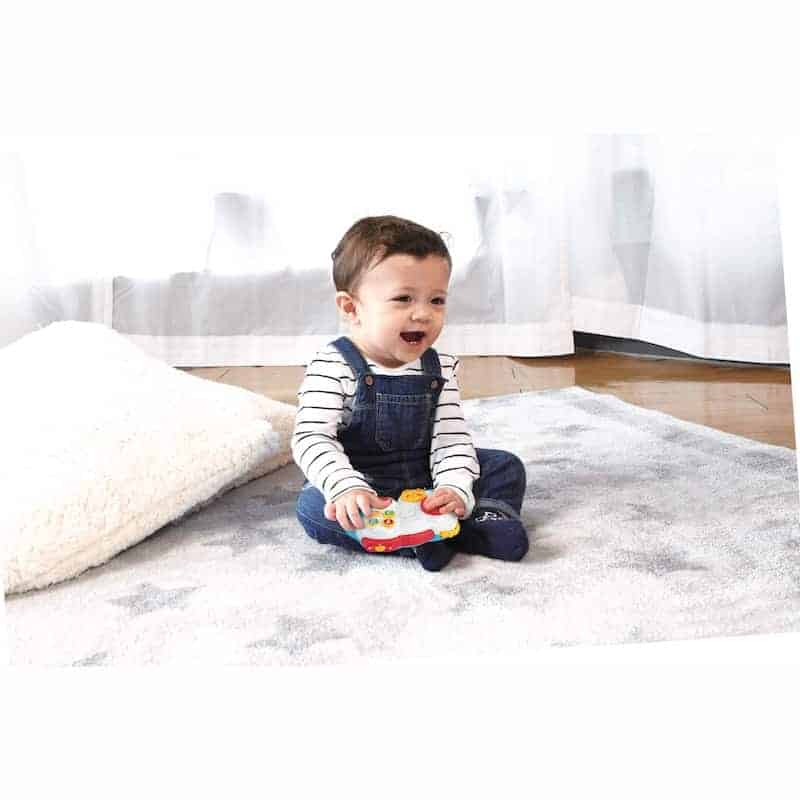 De små hænder får masser af sjov leg ud af denne lille spille controller, som ligner dem, de større børn bruger. Controlleren har adskillige knapper og spiller lyde og glad musik, når knapperne aktiveres. Desuden er den ledningsfri og derfor nem at tage med overalt.