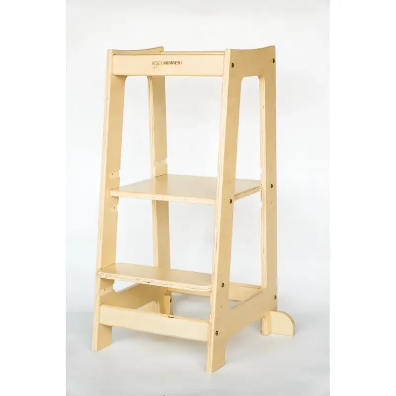 Hemmingsen Kids Maya Læringstårn Natur er velegnet til børn i aldersgruppen 1-6 år. Tårnet er designet af Hemmingsen Kids ejer, Nina Liv Olesen, og har fået sit navn efter hendes datter, Maja. Det sammenklappelige læringstårn er skabt af miljøvenligt og holdbart birketræ, og det egner sig perfekt til at stimulere og underholde børn, mens du f.eks. laver mad, ordner vasketøj eller udfører andre praktiske opgaver, der kræver en smule fokus.