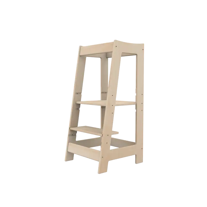 Det ergonomiske design gør det nemt at pakke væk og sætte op. Ved hjælp af det justerbare trin kan barnet selv kravle op på tårnet.