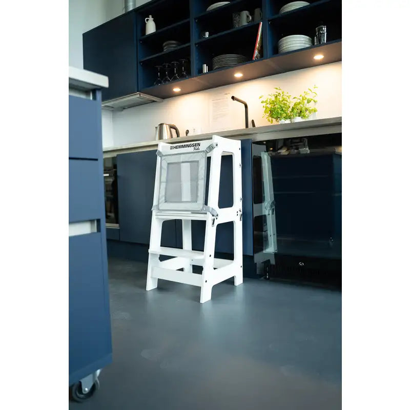 Sikkerhedsnettet til Martin læringstårn gør at læringstårnet kan benyttes til små børn, som endnu ikke står 100% stabilt.