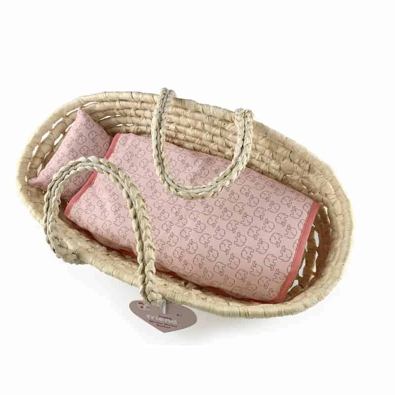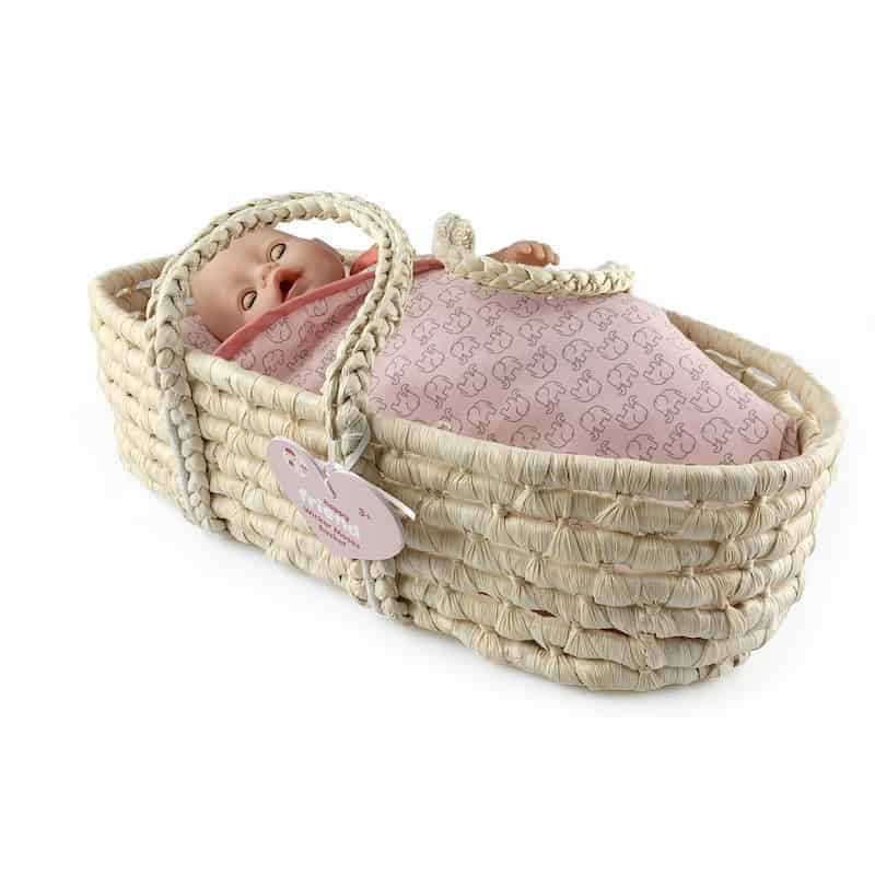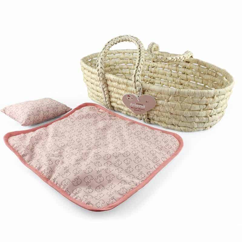 Tid til en lur! Læg dukken i kurven på den bløde pude og tæppet, så hun kan få et hvil, inden det igen er legetid. Moses fletkurven med håndtag rummer dukker op til 46 cm og opfordrer til fantasifuld leg og rollespil. Fra 3 år.