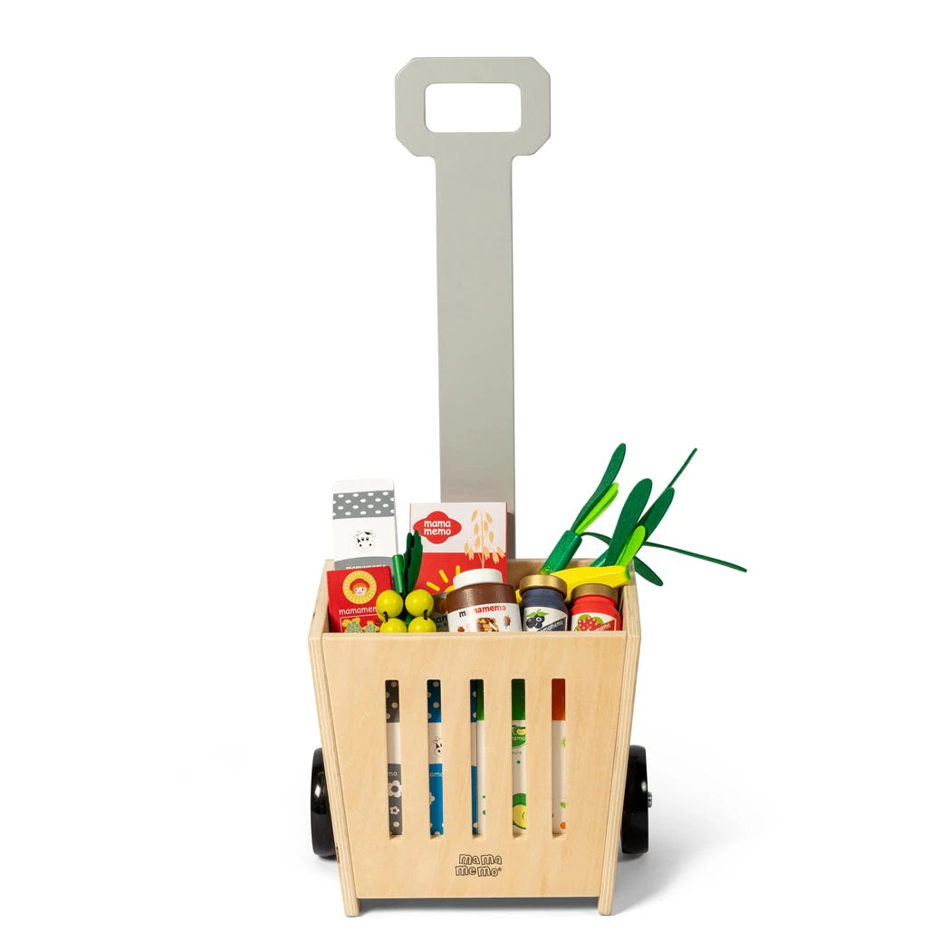Er du også helt vild med at lege bager- og købmandsbutik? Indkøbskurven med hjul fra MAMAMEMO® er det perfekte suppliment dertil.