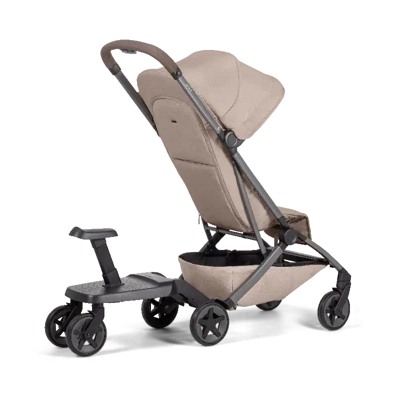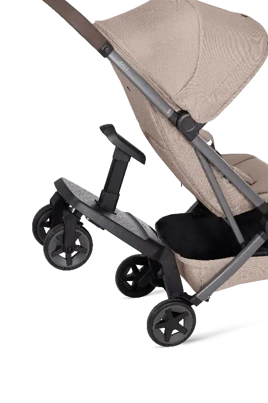 Det er det perfekte tilbehør til forældre, der tager ud med to små. Monter det med et enkelt klik til din Joolz Aer, og dit lille barn er klar til turen, enten stående eller siddende. Og når den den lille gerne vil gå igen, vip bare fodbrættet op og kør videre. Når I er hjemme igen, er der ingen grund til at afmontere søskendebrættet. Bare fold brættet med din Joolz Aer til en kompakt pakke og gem det væk.