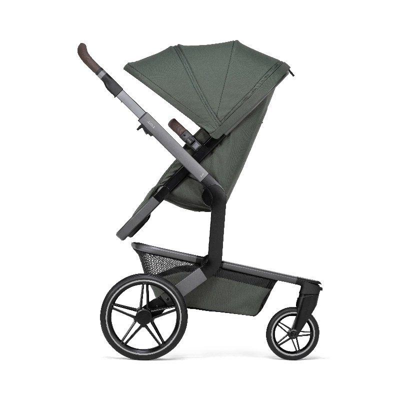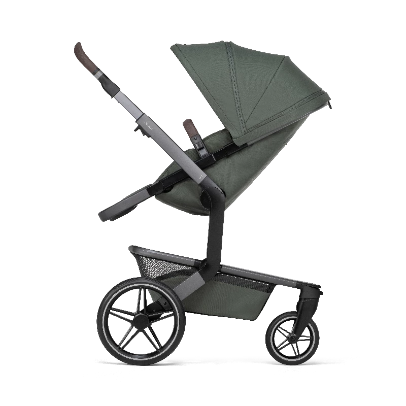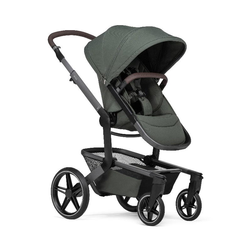 Joolz Day + kører utroligt let takket være det nye lette hjuldesign, og med enhåndsstyring er Joolz Day + let at manøvrere. Day+ har affjedring på alle 4 hjul, så du skal bare nyde turen i byens parker, på brostenene eller lås de drejelige hjul for mere komfort på ujævne veje eller i skoven.